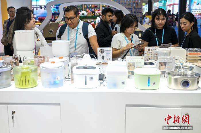 11月3日,广交会宠物用品展区内的智能化宠物产品吸引境外采购商。(图片来源:本文图片均据中新网)