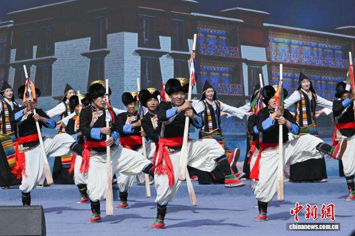 图为山南市隆子县艺术团表演打墙舞《扎西康桑》。(图片来源:本文图片均据中新网)