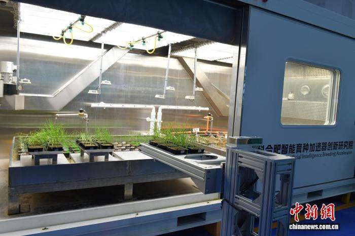 11月2日,位于安徽合肥的中科合肥智能育种加速器创新研究院,无人车正在运输全链条机器人育种家“小海”逆境舱内的小麦苗。