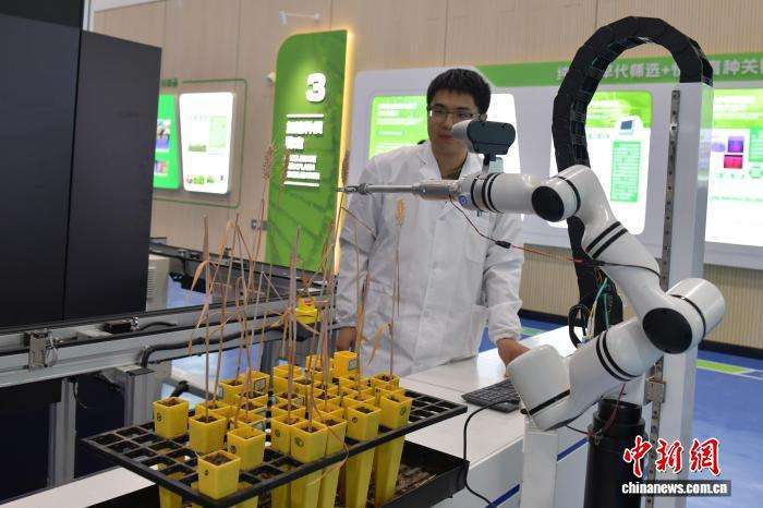 11月2日,位于安徽合肥的中科合肥智能育种加速器创新研究院,小麦采摘机器人正在工作,该机器人是全链条机器人育种家“小海”的组成部分。