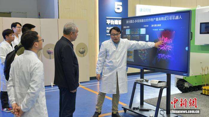 11月2日,位于安徽合肥的中科合肥智能育种加速器创新研究院,工作人员正在介绍全链条机器人育种家“小海”的相关内容。