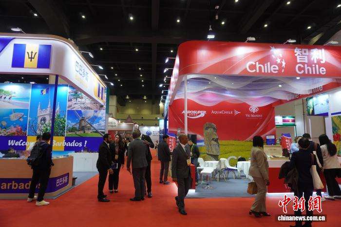 图为中外嘉宾参观第十八届中国—拉美企业家高峰会形象展示。(图片来源:本文图片均据中新网)