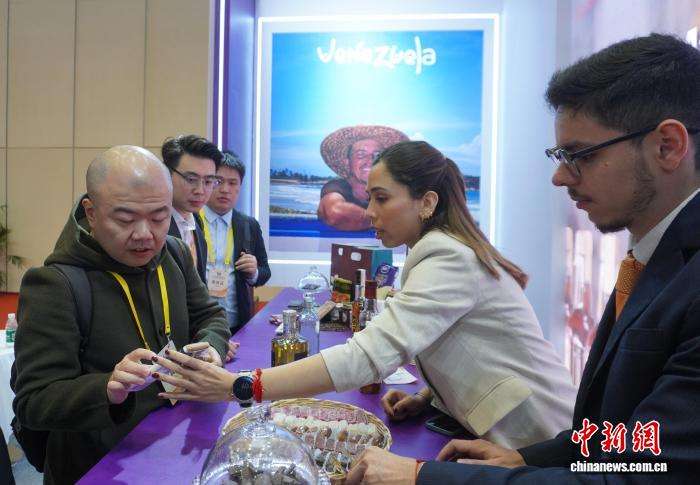 图为嘉宾了解委内瑞拉特产。