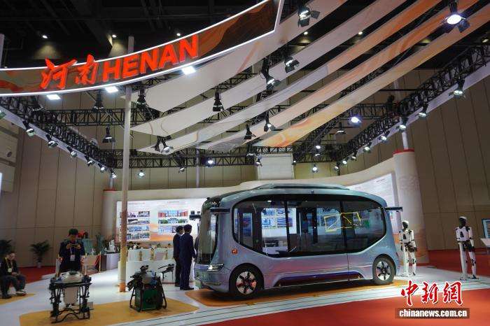图为无人驾驶汽车亮相河南展馆。
