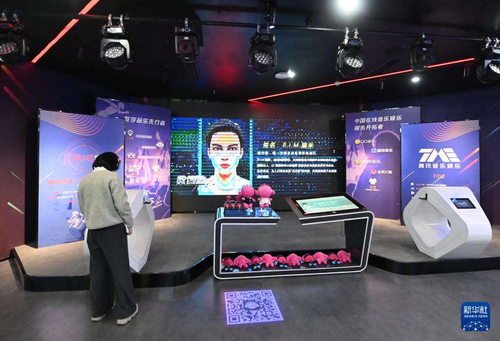 图为11月2日在成都市天府长岛数字文创园拍摄的腾讯音乐娱乐展台。