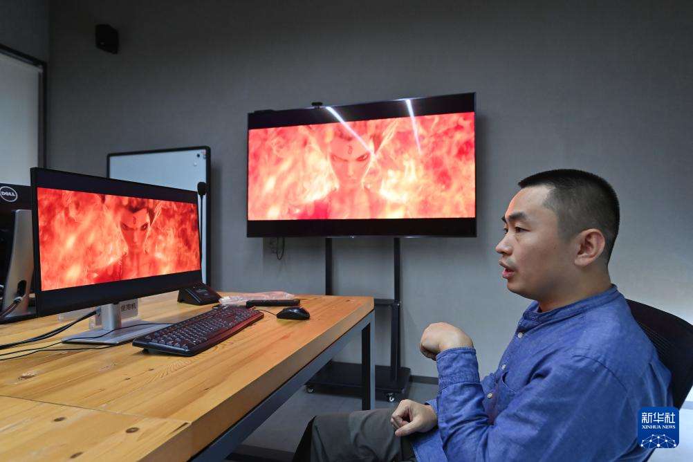 11月2日,墨境天合成都数字图像科技有限公司总监邢明礼在介绍公司业务。墨境天合成都数字图像科技有限公司专注于国内顶级视觉特效与动画制作,参与《哪吒之魔童闹海》等近百部电影视效制作。