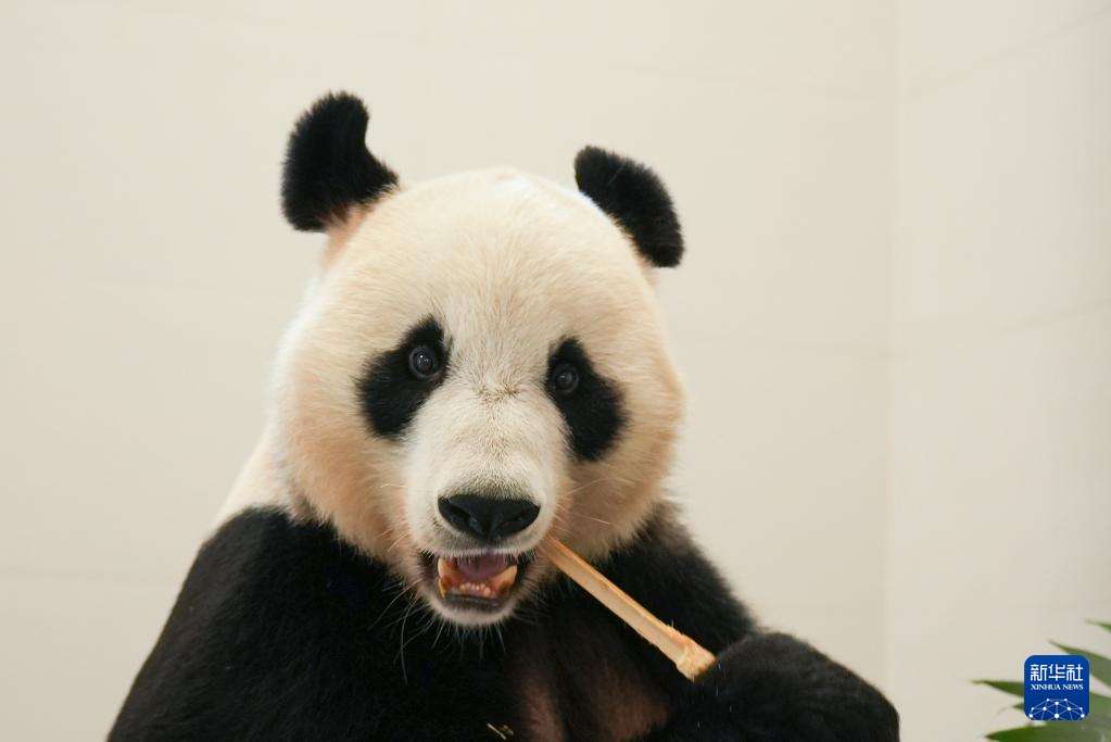 熊猫中心绵阳基地位于四川绵阳科技城新区鼓楼山生态公园,用地约120公顷,基地建设有50余套环境优美、满足大熊猫饲养要求的大熊猫圈舍。图为11月4日,在中国大熊猫保护研究中心绵阳基地,大熊猫“华豹”入住圈舍后吃竹子。(图片来源:本文图片均据新华社)