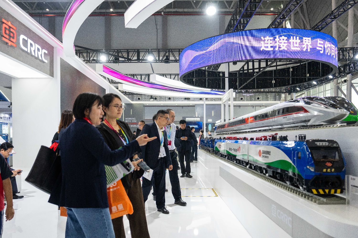 11月7日拍摄的2025中国国际轨道交通和装备制造产业博览会户外展区。