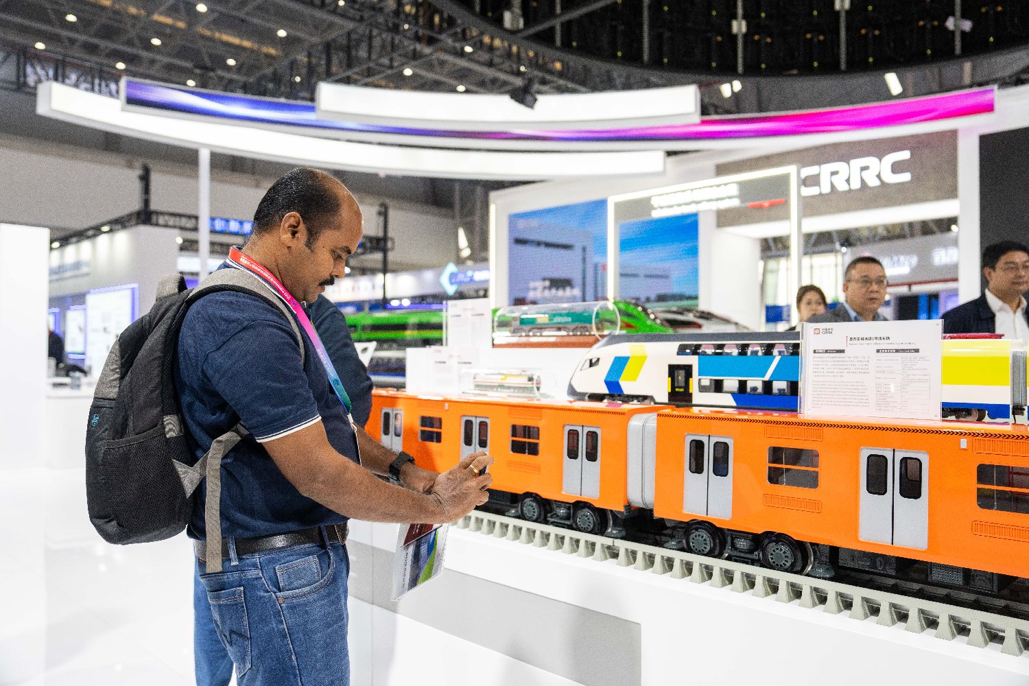 11月7日,观众在株洲国际会展中心了解中国国产列车产品。 当日,2025中国国际轨道交通和装备制造产业博览会在湖南株洲国际会展中心开幕。(图片来源:本文图片均自新华社)