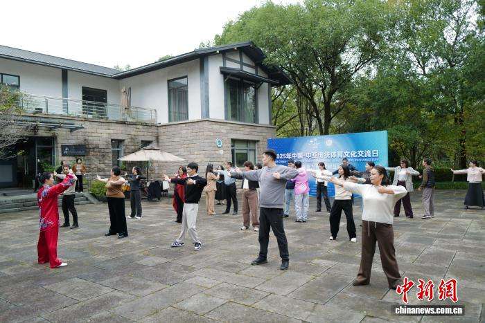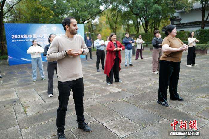 11月9日,2025年中国-中亚传统体育文化交流日活动在杭州举行,来自哈萨克斯坦、乌兹别克斯坦等国的中亚友人以及来自多所中国高校的师生同练八段锦,感受中国传统养生功法的魅力。