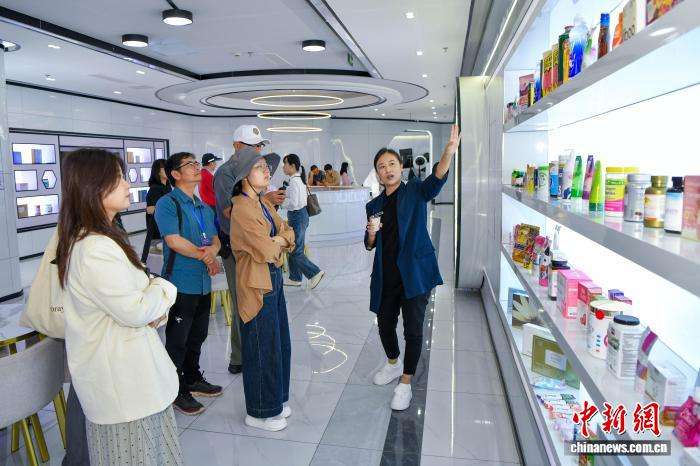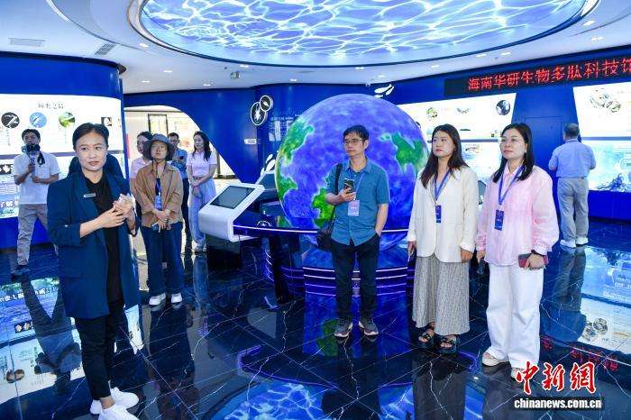 图为海外华媒代表参观园区内的海南华研胶原科技股份有限公司。(图片来源:本文图片均据中新网)