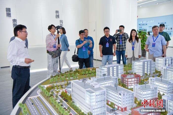 图为海外华媒代表参观园区内的东湖高新海口生物城。