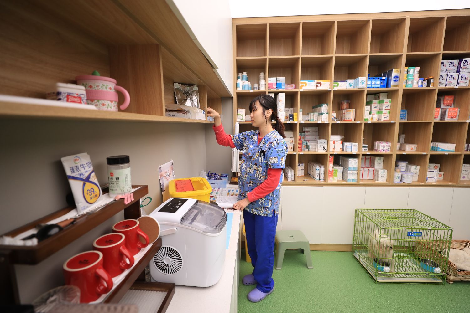 在鞍山市铁西区一家宠物医院,工作人员在整理药品。