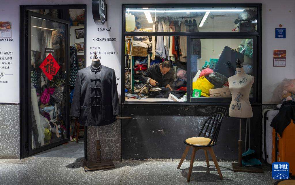 11月12日,上海市长宁区愚园路的小赵裁缝店店主在熨烫衣服。(图片来源:本文图片均据新华社)