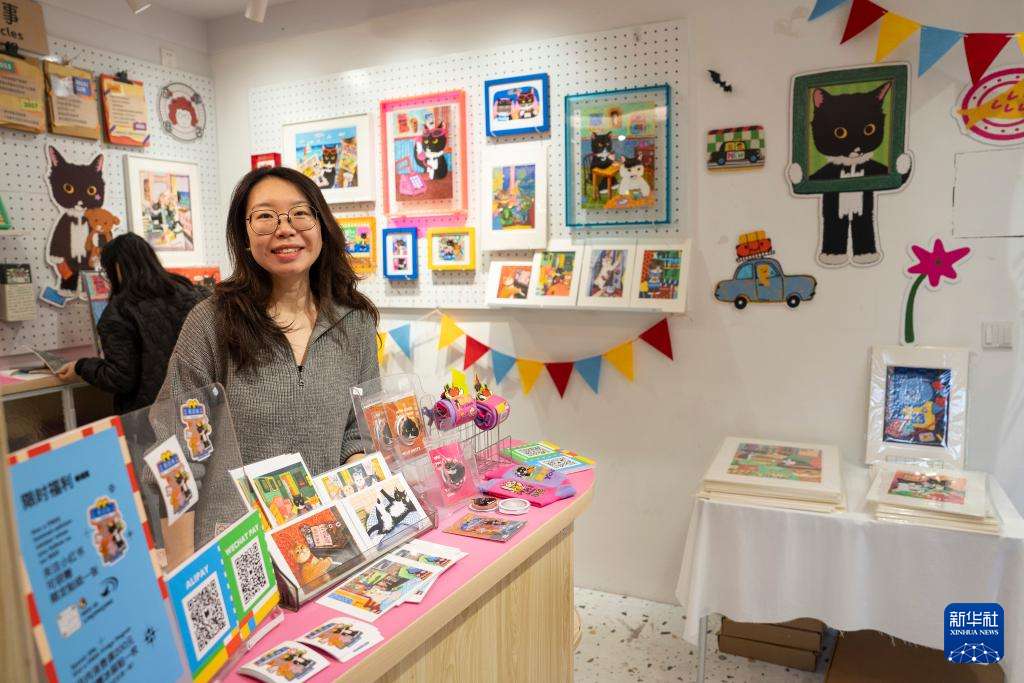 11月12日,在上海市长宁区愚园路的故事商店,工作人员展示文创产品。愚园路故事商店是由街道支持打造的10平方米特色空间,街道免费提供沿街铺面,将其打造成居民情感交流的“解忧杂货铺”。