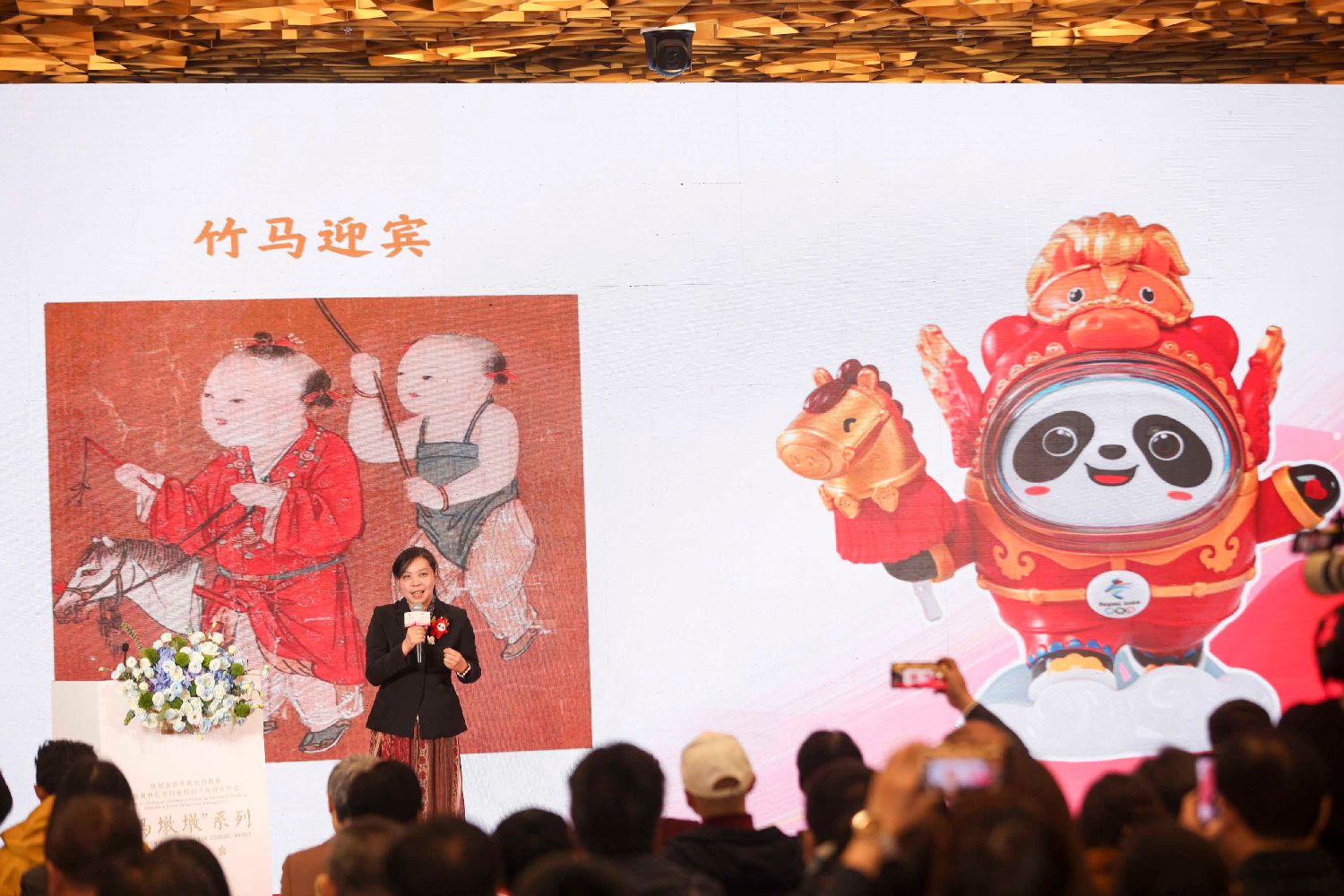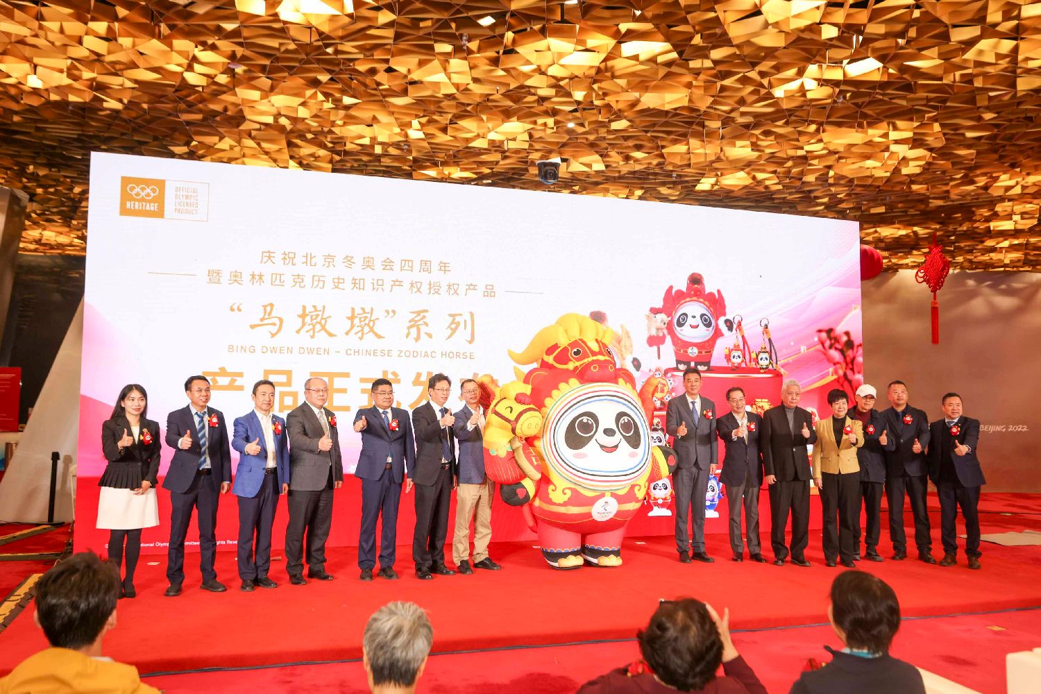 授权产品涵盖毛绒、摆件、徽章、冰箱贴、陶瓷、钥匙扣、明信片、贵金属、抱枕等近百款产品。图为“马墩墩”形象发布仪式。(图片来源:本文图片均自中新社)