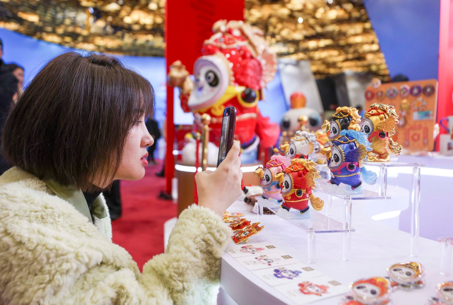 11月14日,参会嘉宾观看各类“马墩墩”周边产品。