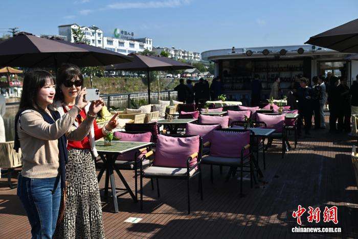 图为海外华文媒体代表沉浸式体验“山水画廊”的生态之美。