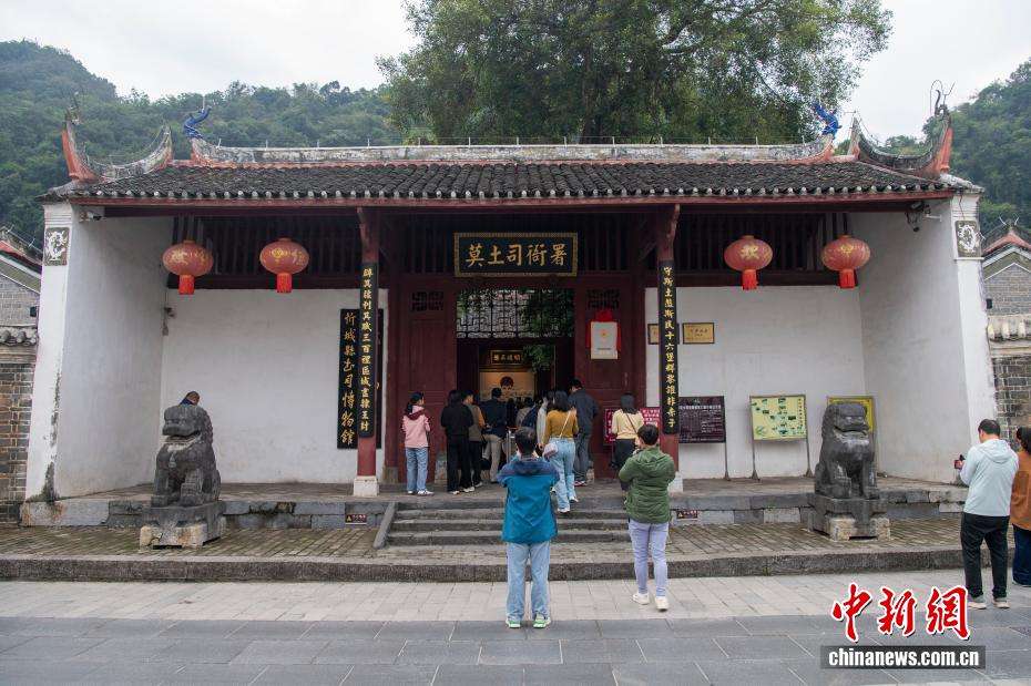 莫土司衙署坐落于忻城县翠屏山北麓,由忻城第八任土司莫镇威始建于明万历十年(1582年),保护总面积38.9万平方米,是中国现存规模最大、保存最完好的土司建筑群,被誉为“壮乡故宫”。11月17日,来自泰国、柬埔寨、老挝等国家和地区的媒体人探访广西来宾市忻城县莫土司衙署。(图片来源:本文图片均自中新网)