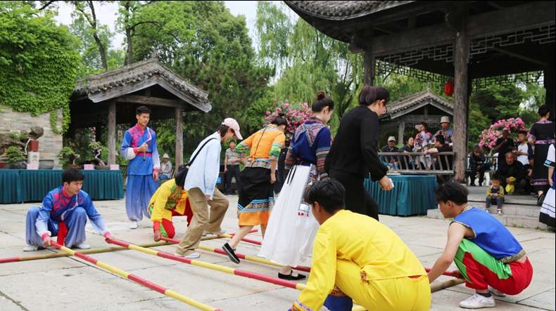 尤家花园人头攒动,非遗花鼓灯、竹竿舞表演等活动受到热捧。(图片来源:王林洪摄)