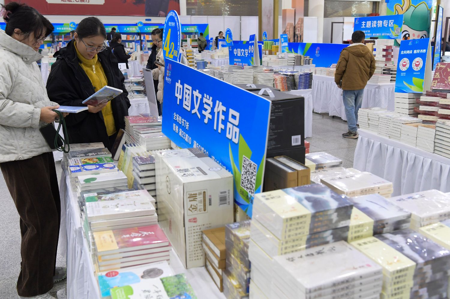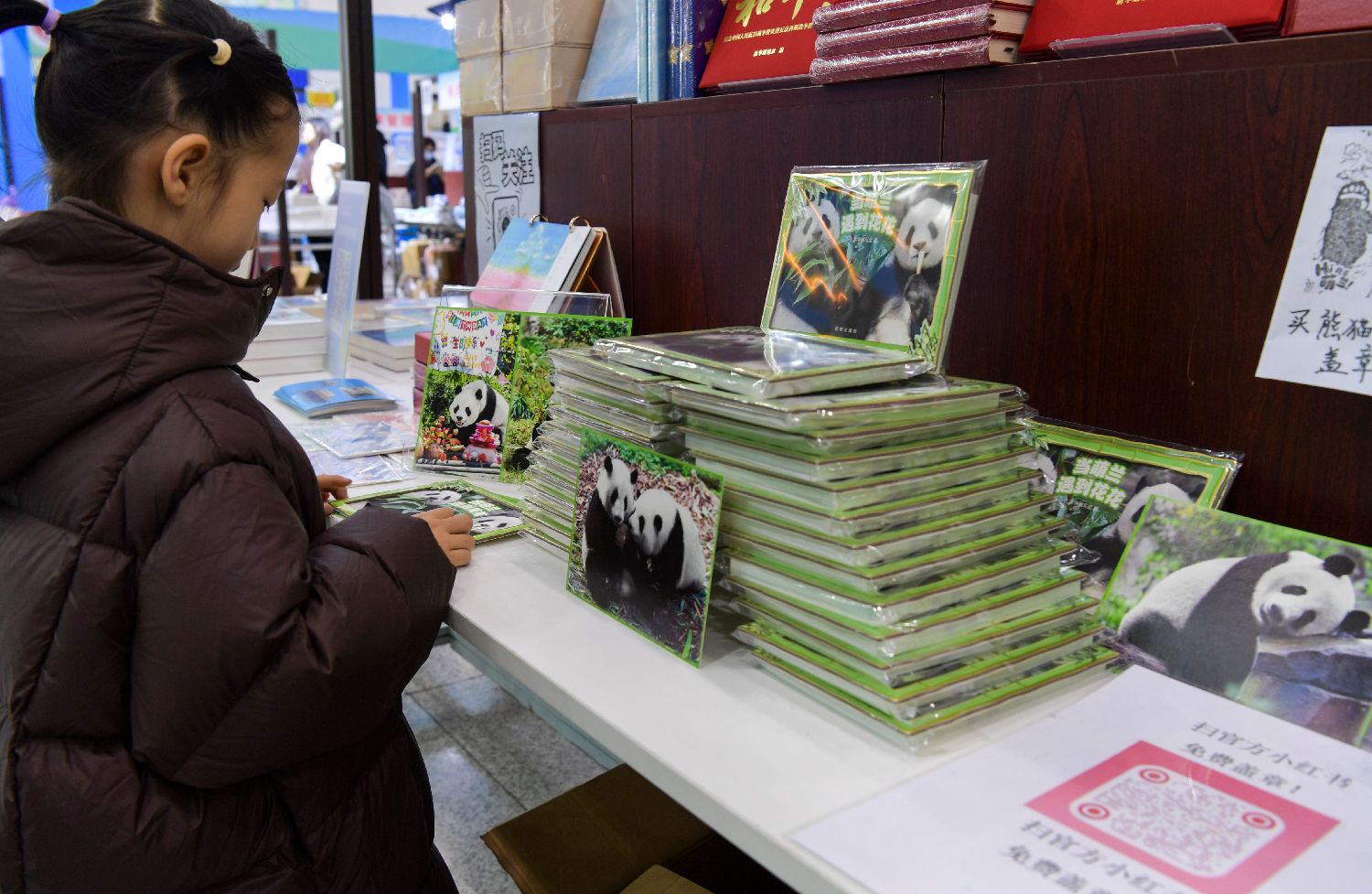 11月21日,市民在书市上挑选“大熊猫”图书。