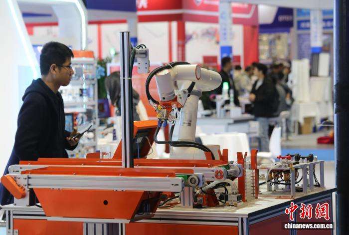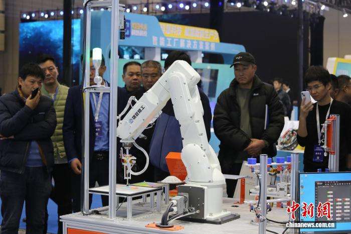 图为智能机械臂操作吸引参会者。(图片来源:本文图片均来自中新网)