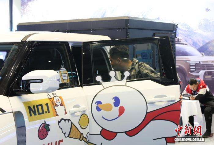 图为参会者体验新能源汽车。
