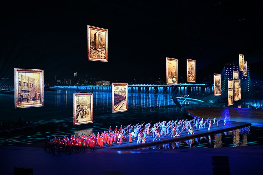 11月21日,第十五届全国运动会闭幕式在广东深圳举行。图为演出现场。(图片来源:中新社)