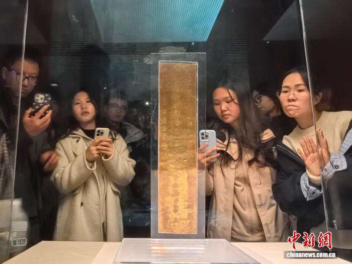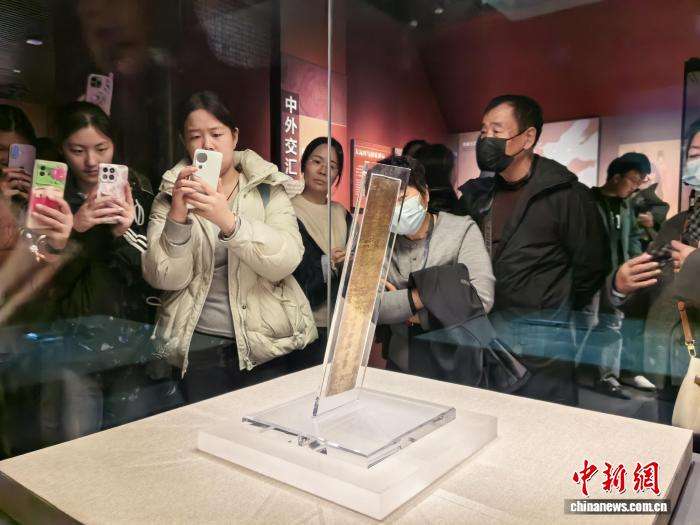 图为文物金简吸引观众围观。 (图片来源:本文图片均据中新网)