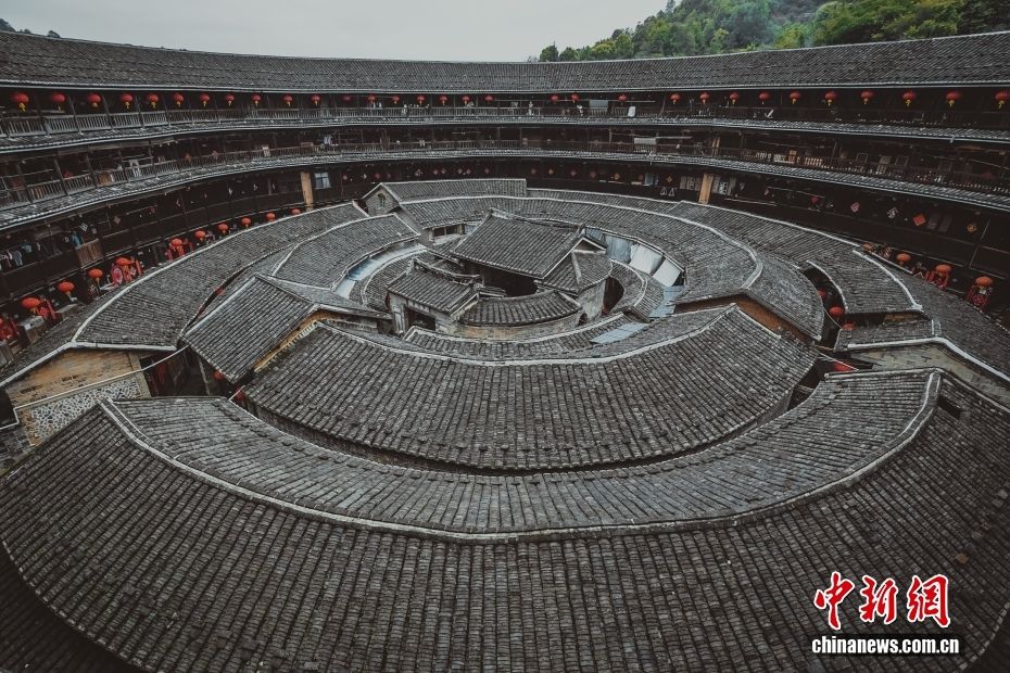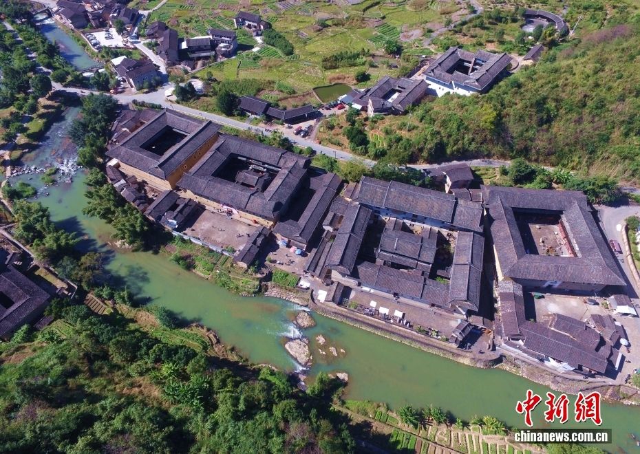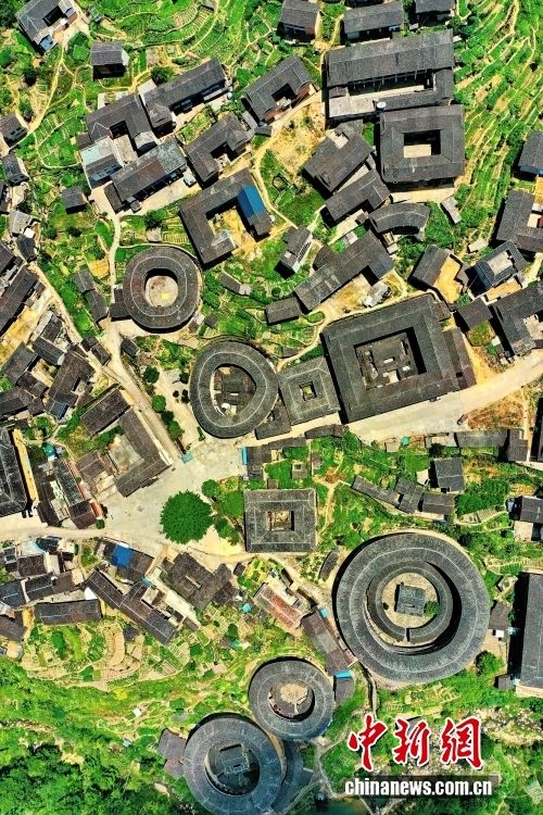 崇山峻岭之间或圆或方的土楼,是人们对于福建古民居最直接的印象。福建土楼产生于宋元时期,是客家人在辗转迁徙中,发扬古老建筑技术创造的“世界建筑奇迹”。图为从空中鸟瞰永定土楼群,非常壮美。(图片来源:本文图片均来自中新网)