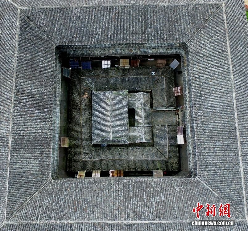 2008年,福建永定客家土楼群落中的初溪土楼群、洪坑土楼群、高北土楼群、振福楼、衍香楼等被列入《世界文化遗产名录》。图为位于永定区高头镇高北村承启楼。