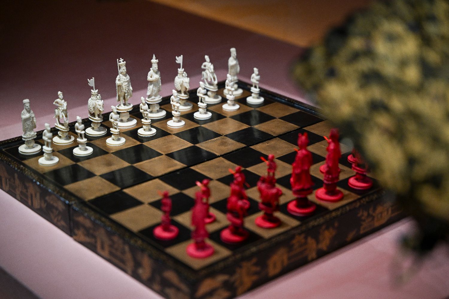 11月27日,展览中展出的黑漆描金国际象棋棋盒。(图片来源:中新社)