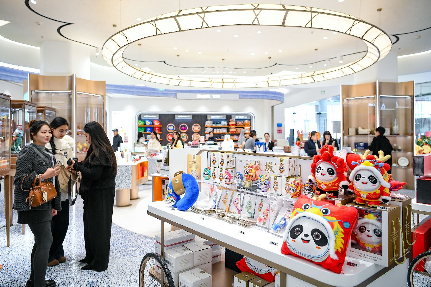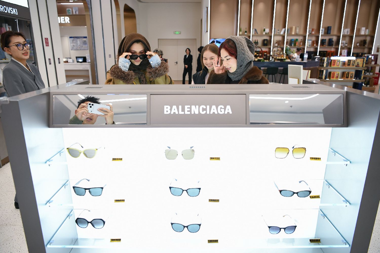 11月28日,在天津,顾客在店内打卡拍照。当日,作为中国市内免税店试点城市之一,天津首家市内免税店投入运营。(图片来源:本文图片均自中新社)