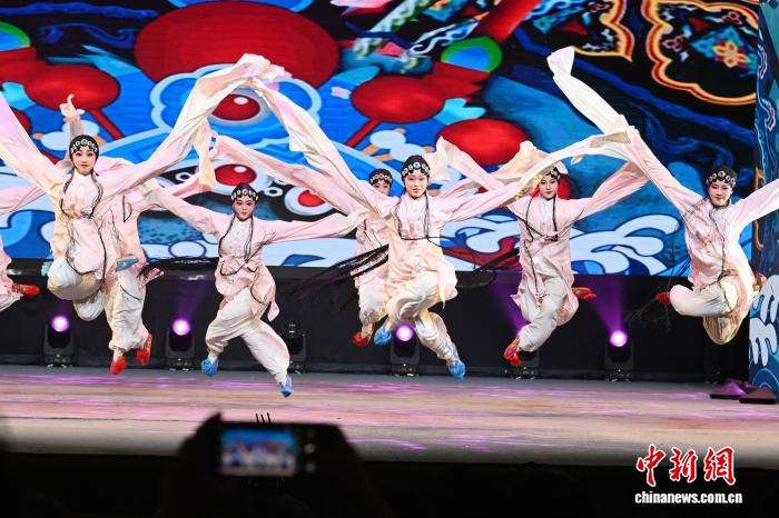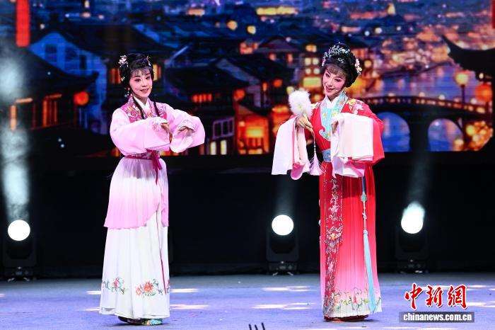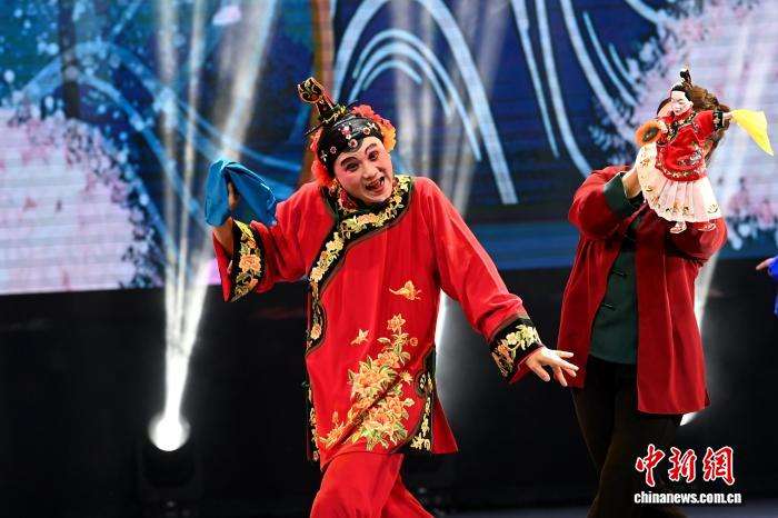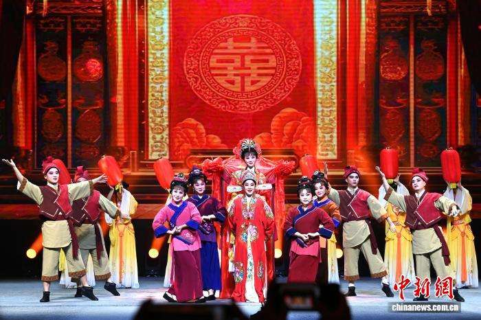 本次活动主题为“戏韵闽南·和合共生”,由中共福建省委宣传部指导;福建省文化和旅游厅、漳州市政府主办。图为戏曲表演《家有喜事两岸亲》。(图片来源:本文图片均来自中新网)