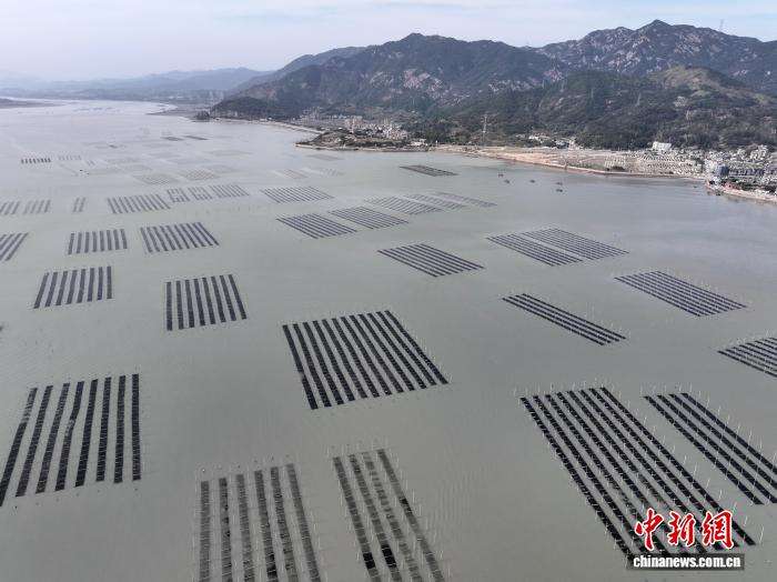 11月27日,无人机拍摄的“海上农场”紫菜种植区。(图片来源:中新网)