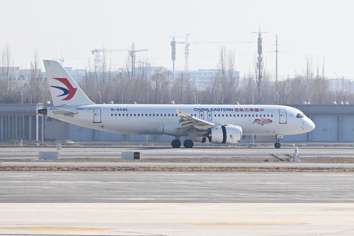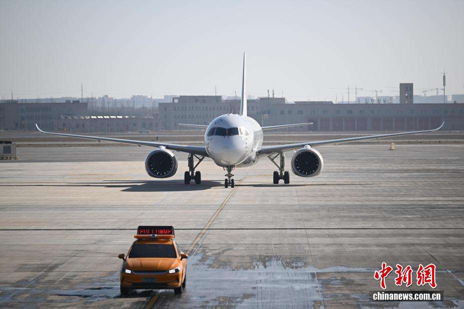C919执飞的东航MU9179航班降落兰州中川国际机场。(图片来源:中新网)