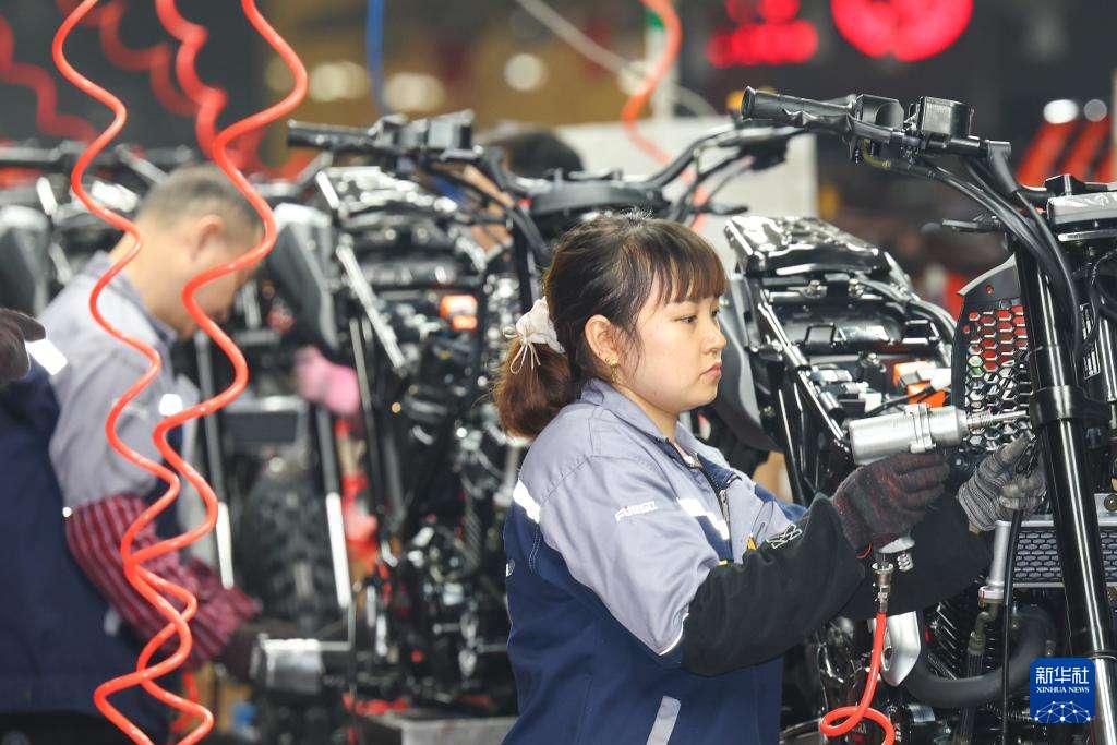 12月2日,在重庆炙焱动力制造有限公司,工人在生产线上组装出口的摩托车。