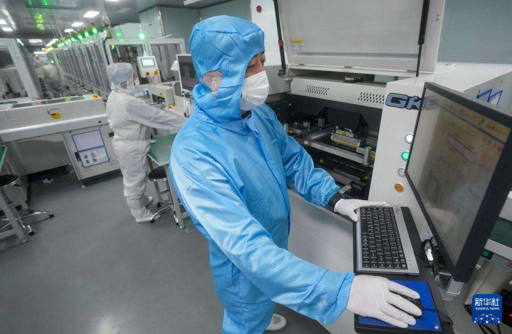 12月2日,在重庆新视通智能科技有限公司COB生产车间,自动固晶机在固定发光晶圆。