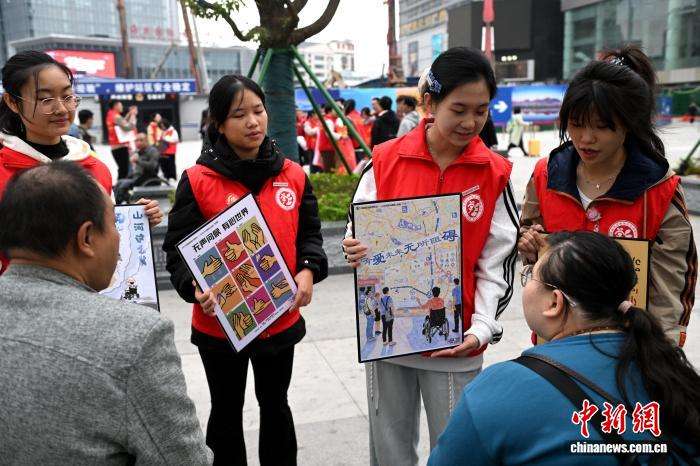 图为志愿者向市民介绍无障碍公益海报内容。