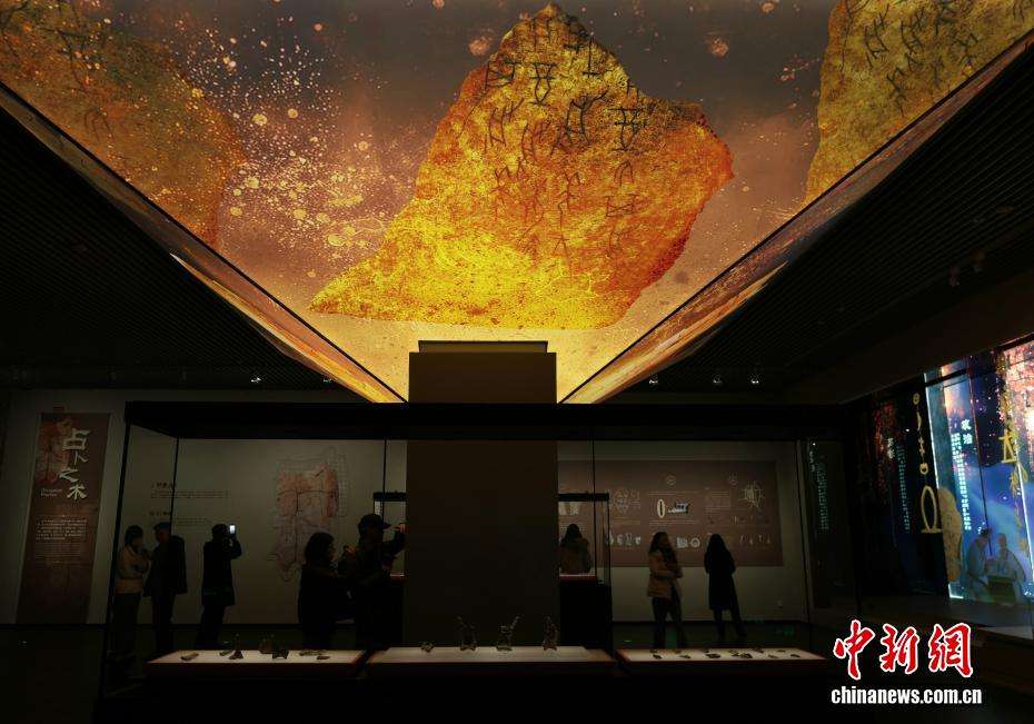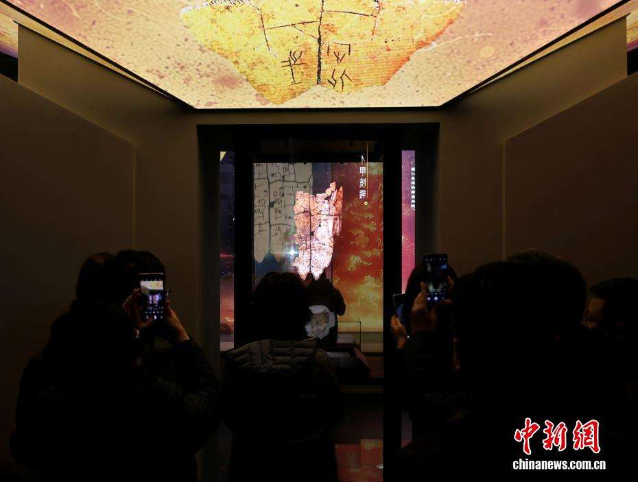 12月6日,在山东济南历城区,观众在展厅内欣赏甲骨卜辞。该文物是自1899年甲骨文发现以来,首次在商代都城以外地区发现的商代卜辞。(图片来源:本文图片均据中新网)