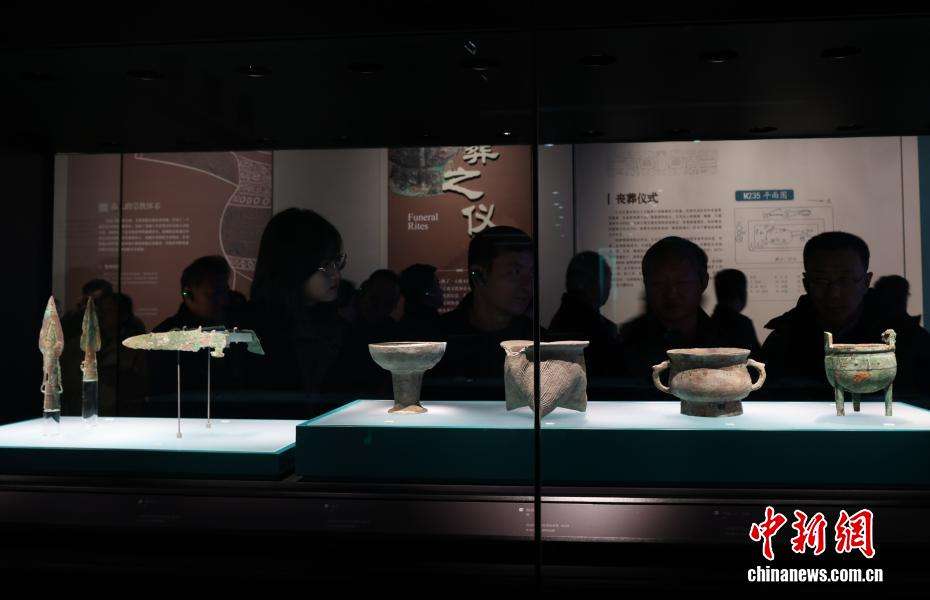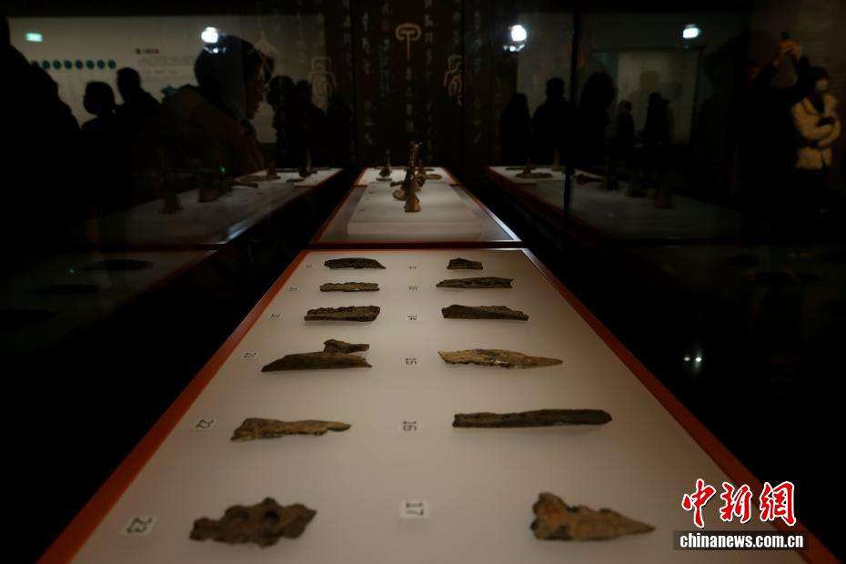12月6日,在山东济南历城区,观众在展厅内欣赏铜觚、铜鼎等文物。