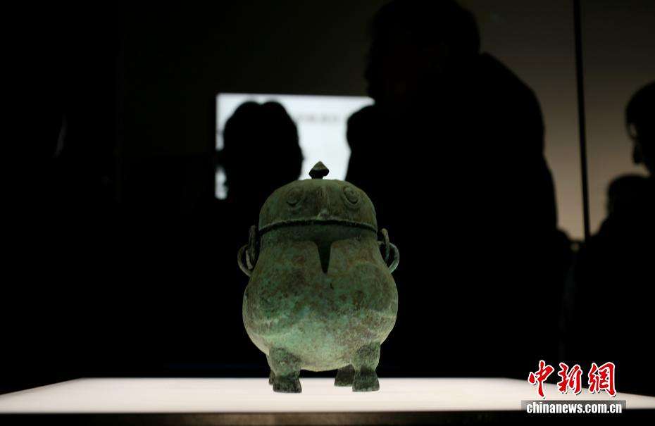 12月6日,在山东济南历城区,展厅内展出铜鸮卣,该卣内曾发现3000多年前的蒸馏酒。
