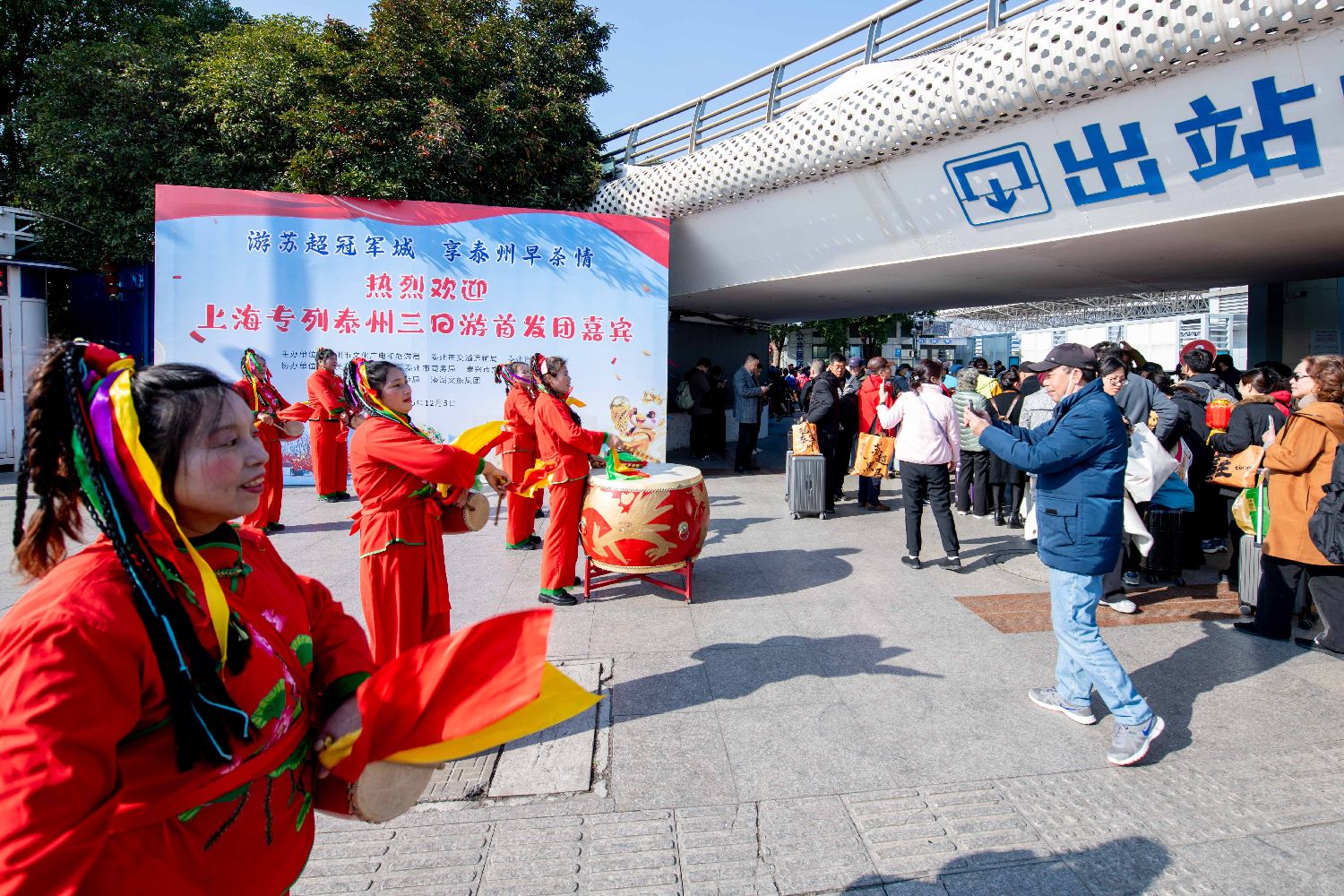 12月5日,旅客乘坐旅游专列到达泰州站。(图片来源:本文图片均据新华社)