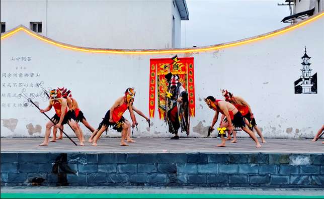 每逢节假日,傩舞队的身影便活跃在村里的乡村大舞台上,为游客、村民们带来一场场精彩的表演。