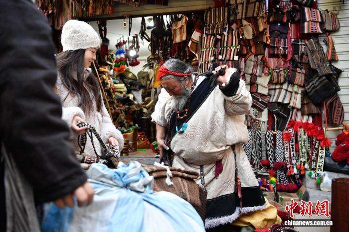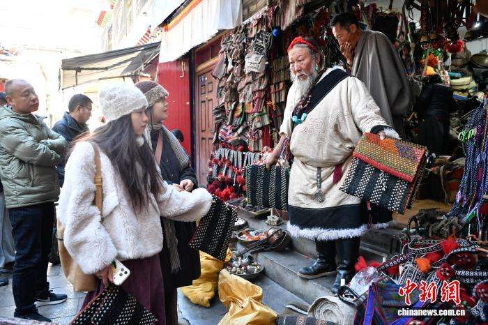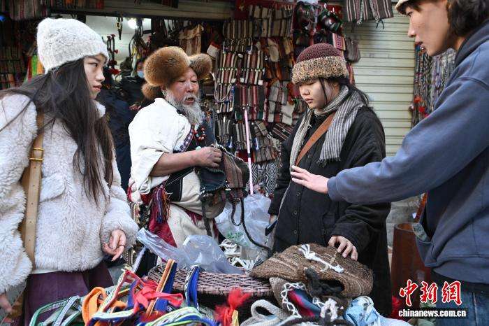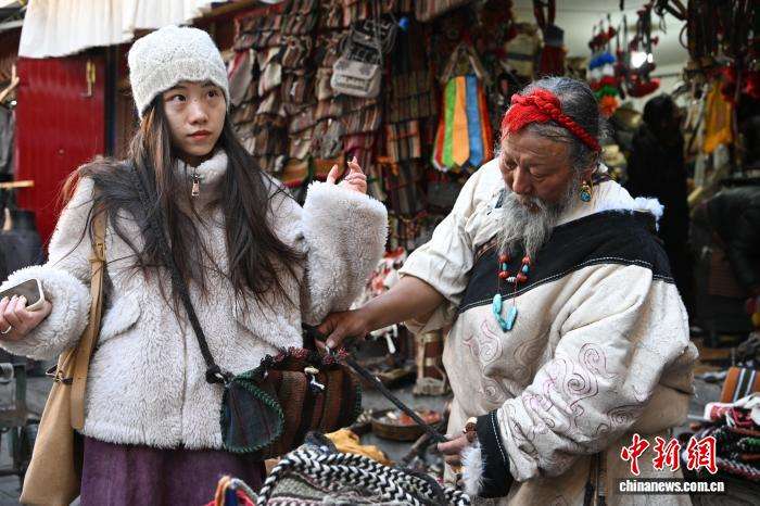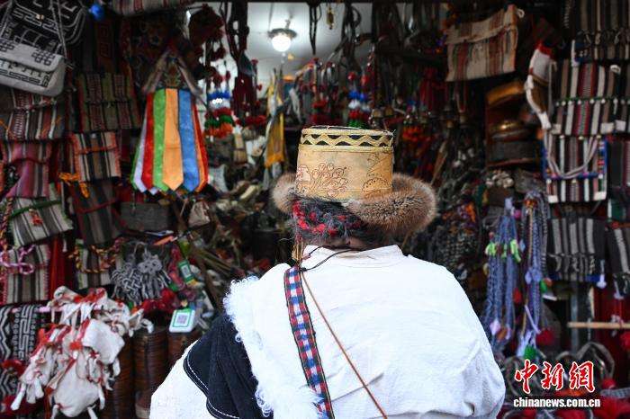 12月9日,西藏拉萨市八廓街冲赛康旁的背阴巷口,55岁店主次仁罗布的藏式老物件小店热闹非凡。不足30平方米的空间里,乌朵、马包、藏式氆氇侧挂包等好物琳琅满目,既有时光沉淀的老物件,也有手艺人新制精品。小店吸引本地民众、年轻人及游客纷纷选购,生意红火。
