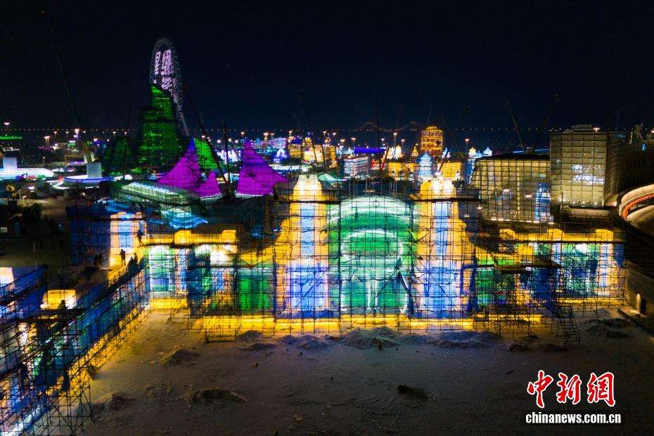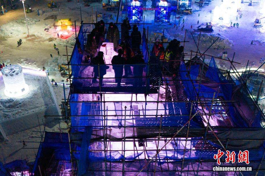 图为建设中的哈尔滨冰雪大世界。(图片来源:本文图片均据中新网)