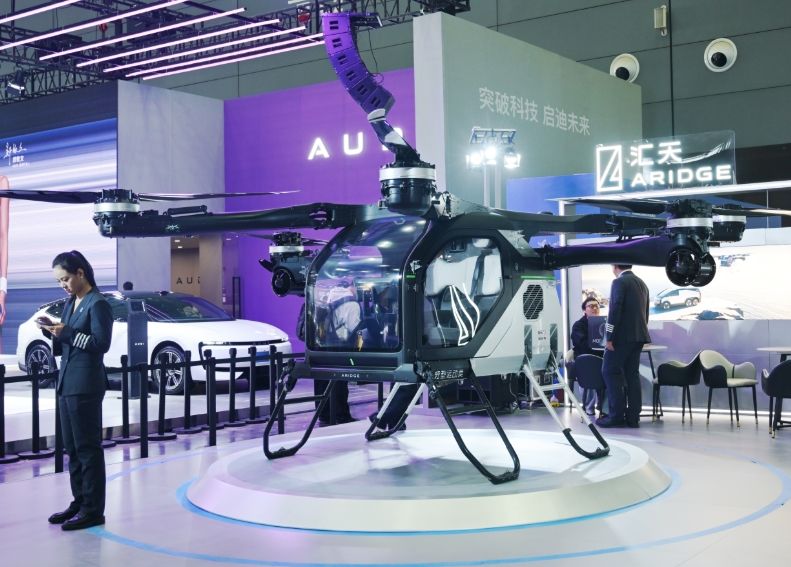 小鹏汇天“陆地航母”分体式飞行汽车的亮相亦十分吸睛。“这是全球首款面向个人用户量产交付的飞行汽车产品,采用‘陆行体+飞行器’分体设计。”汇天航空航天公司副总裁李锐说,位于广州的小鹏汇天飞行汽车量产工厂满产状态下,生产线每30分钟可下线一台飞行器。工厂已将汽车工业的流水线引入航空领域。