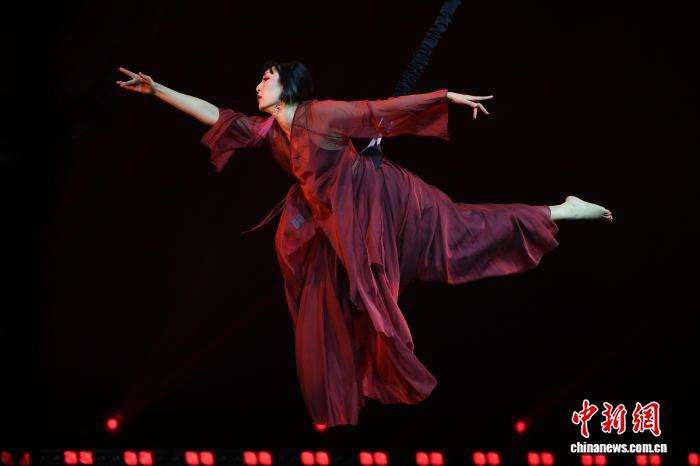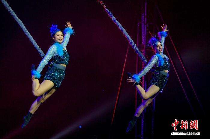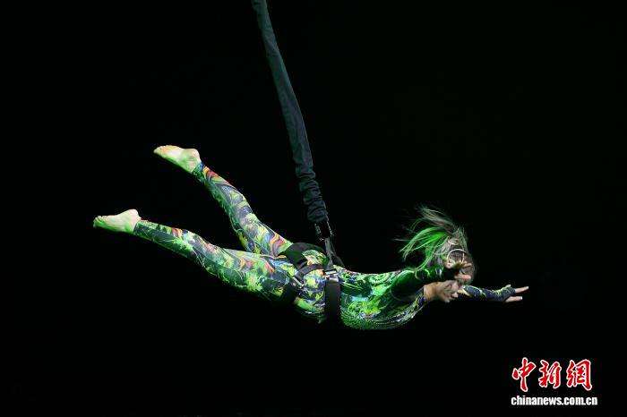 比赛中,选手们借助弹力装置完成跳跃、旋转、翻转等系列动作,配合主题音乐,展现出精准的平衡控制与独特的运动美感。图为12月11日,参赛选手在比赛中。(图片来源:本文图片均据中新网)