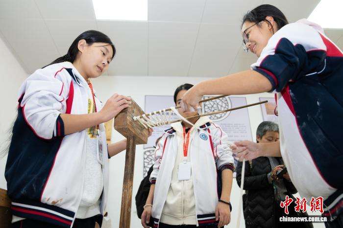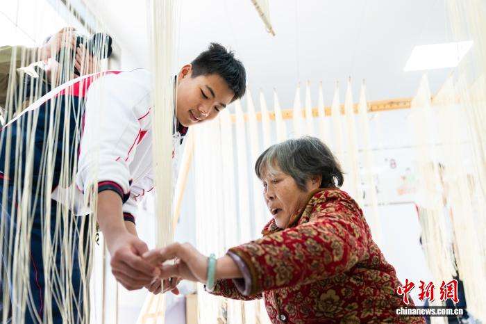 图为缙云盘溪中学学生在制作爽面。该学校在校园文化体系建设中引入麦香工坊、竹编课程等,将缙云传统美食——爽面、缙云地方戏曲——婺剧等引入校园,融入课程,在培养学生兴趣爱好的同时,让传统特色文化在学生群体中传承。