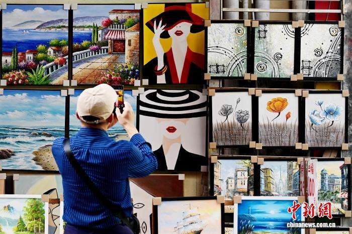 12月11日,游客在大芬油画村拍摄油画。